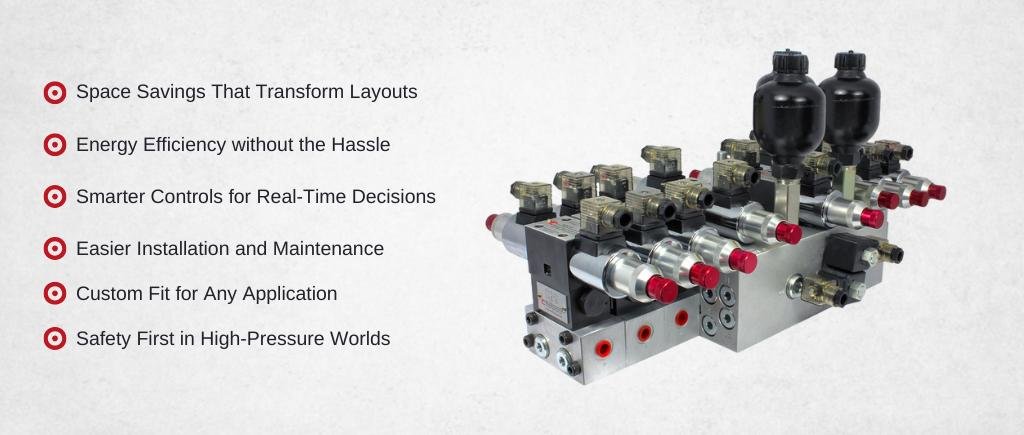 Have you ever walked through your plant and seen hoses getting in the way of everything? Hydraulic manifolds solve that problem by combining valves, ports, and controls into a single block. No more loose connections. No more wasted space. How much more cycle time do you think you could get from your presses and lifts? This list of benefits goes a long way to answering that question.